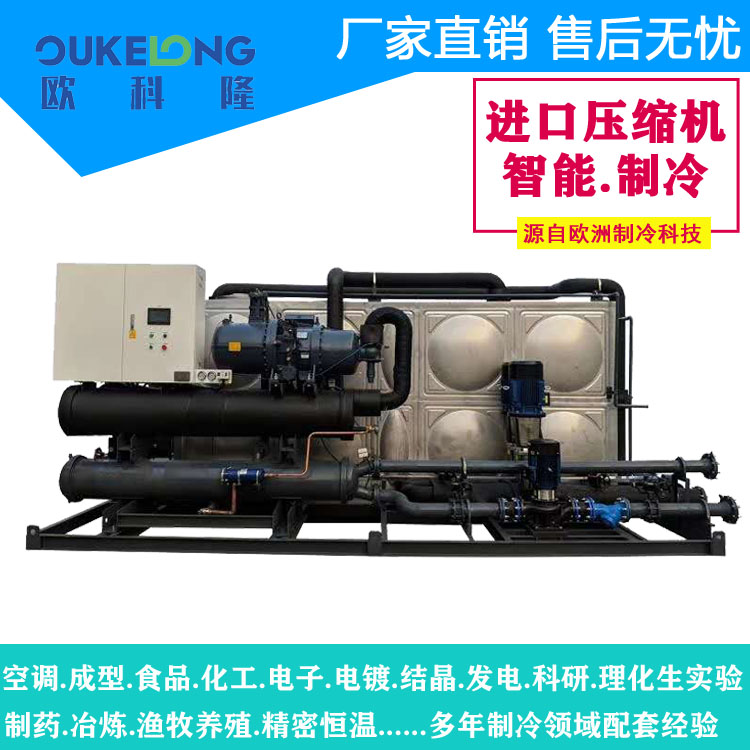 歐科隆非標一體式水冷螺桿機是一款高度定制化的工業制冷解決方案,專為特殊工藝需求設計,集壓縮機、冷凝器、水泵、控制系統于一體化機箱,突破傳統機組安裝限制,滿足客戶個性化制冷需求。