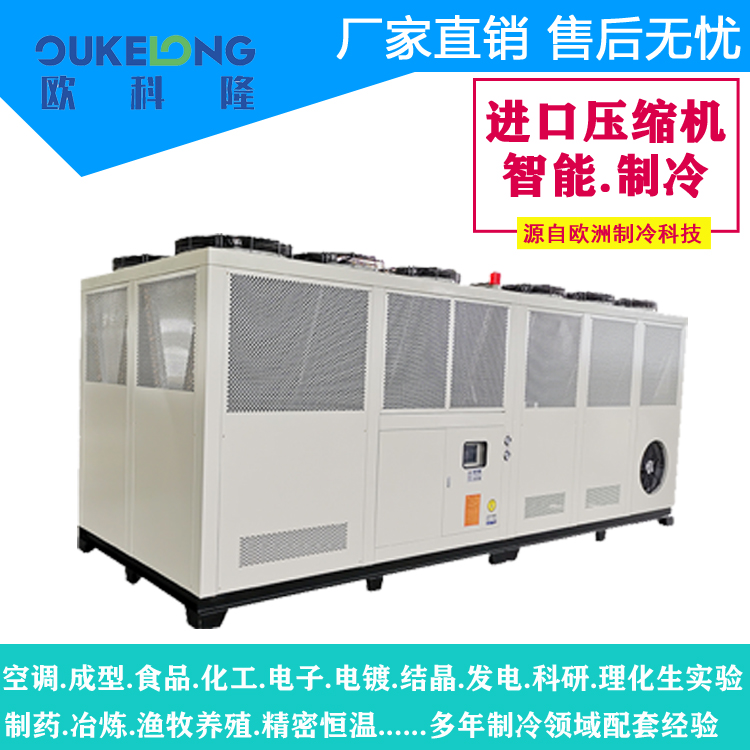歐科隆150匹風冷螺桿式冷水機以工業級的穩定性和智能化管理功能,滿足大型項目的制冷需求,年運行節能率可達25%以上。